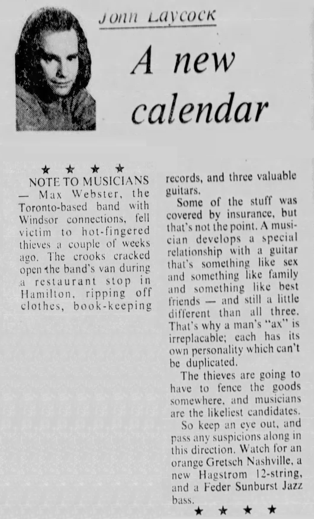 The band's van was broken into after this gig and much of their gear was stolen, including Kim's cherished orange Gretsch Nashville 6120 guitar.