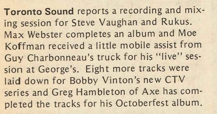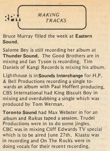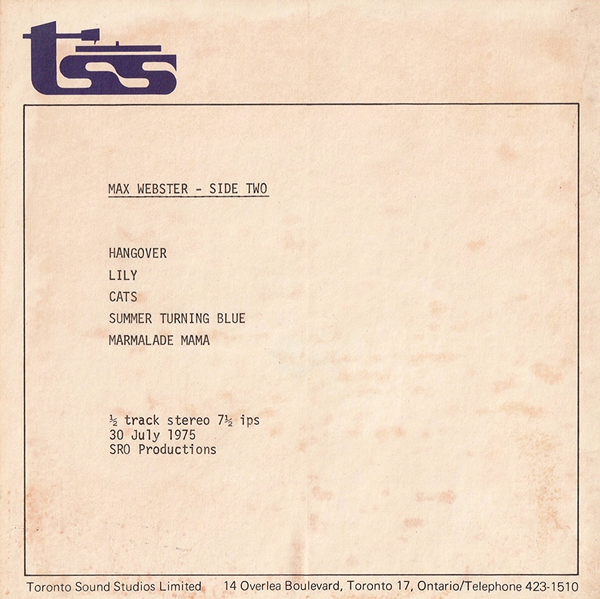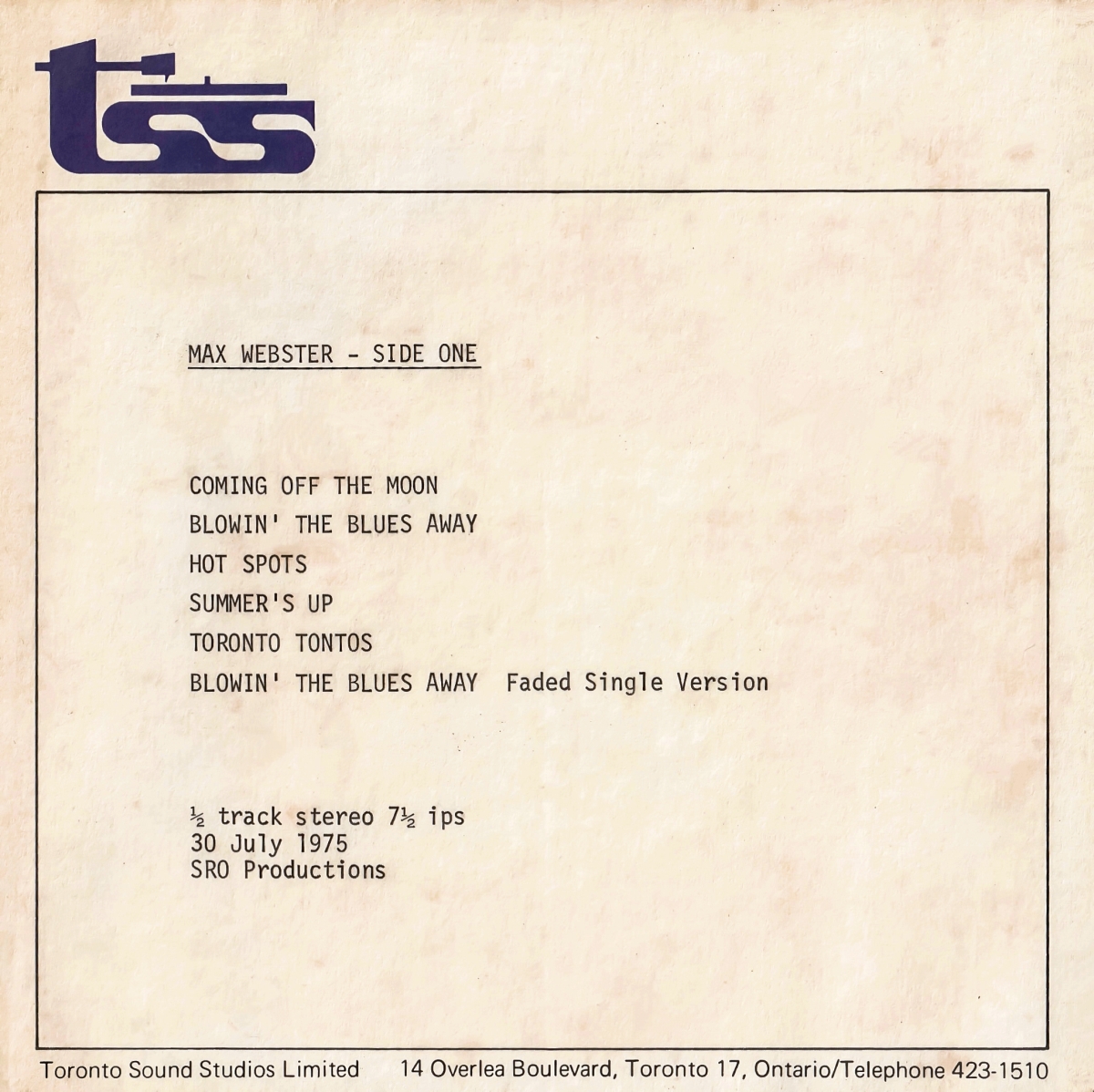 Overnight Sensation has already been cut from the album track listing, and the single version of Blowing The Blues Away is tagged onto the end of side 1 of this listening copy. In addition to the work done last month, Here Among The Cats has the ending the band played live in this period instead of the eventual fade-out.