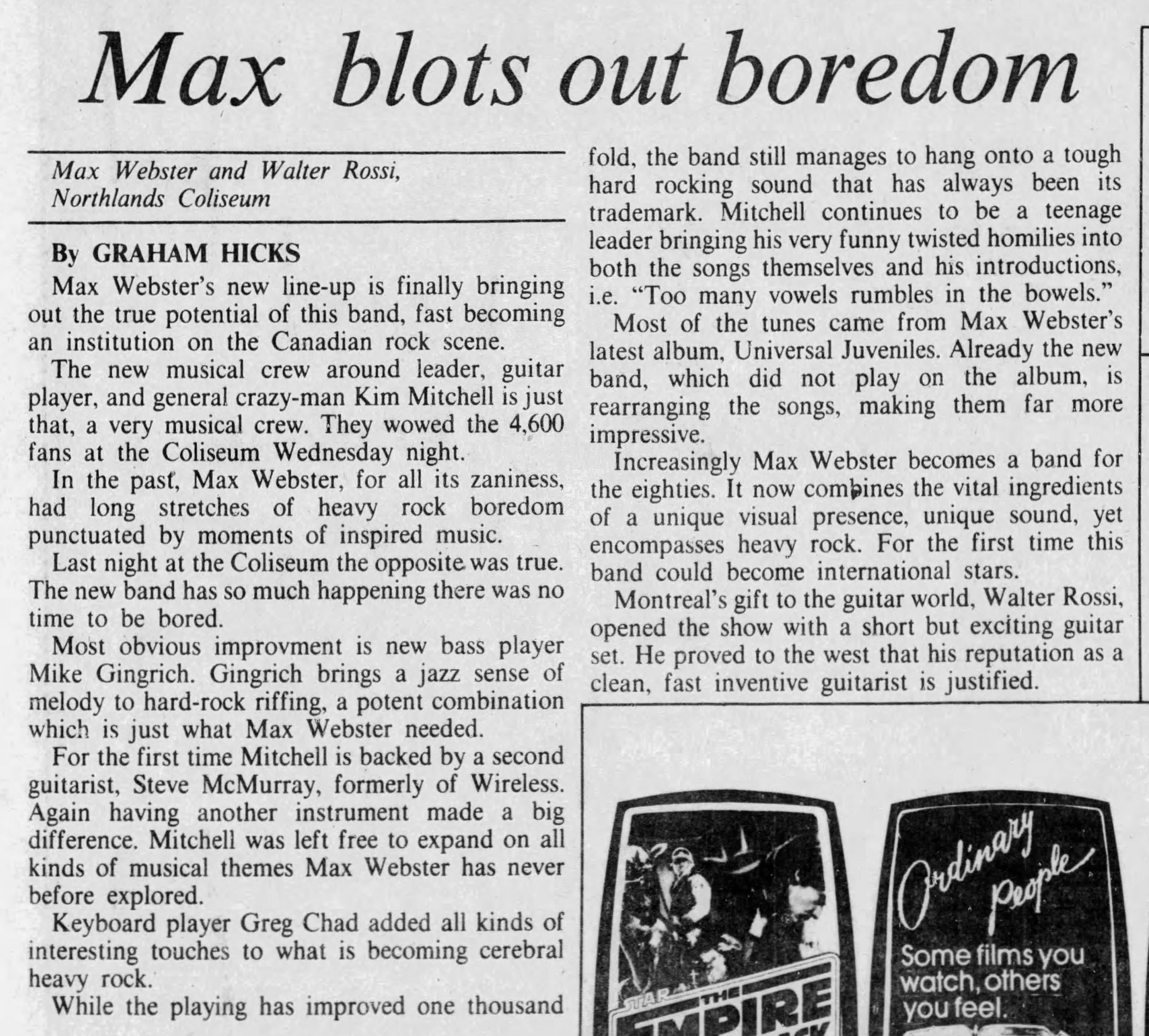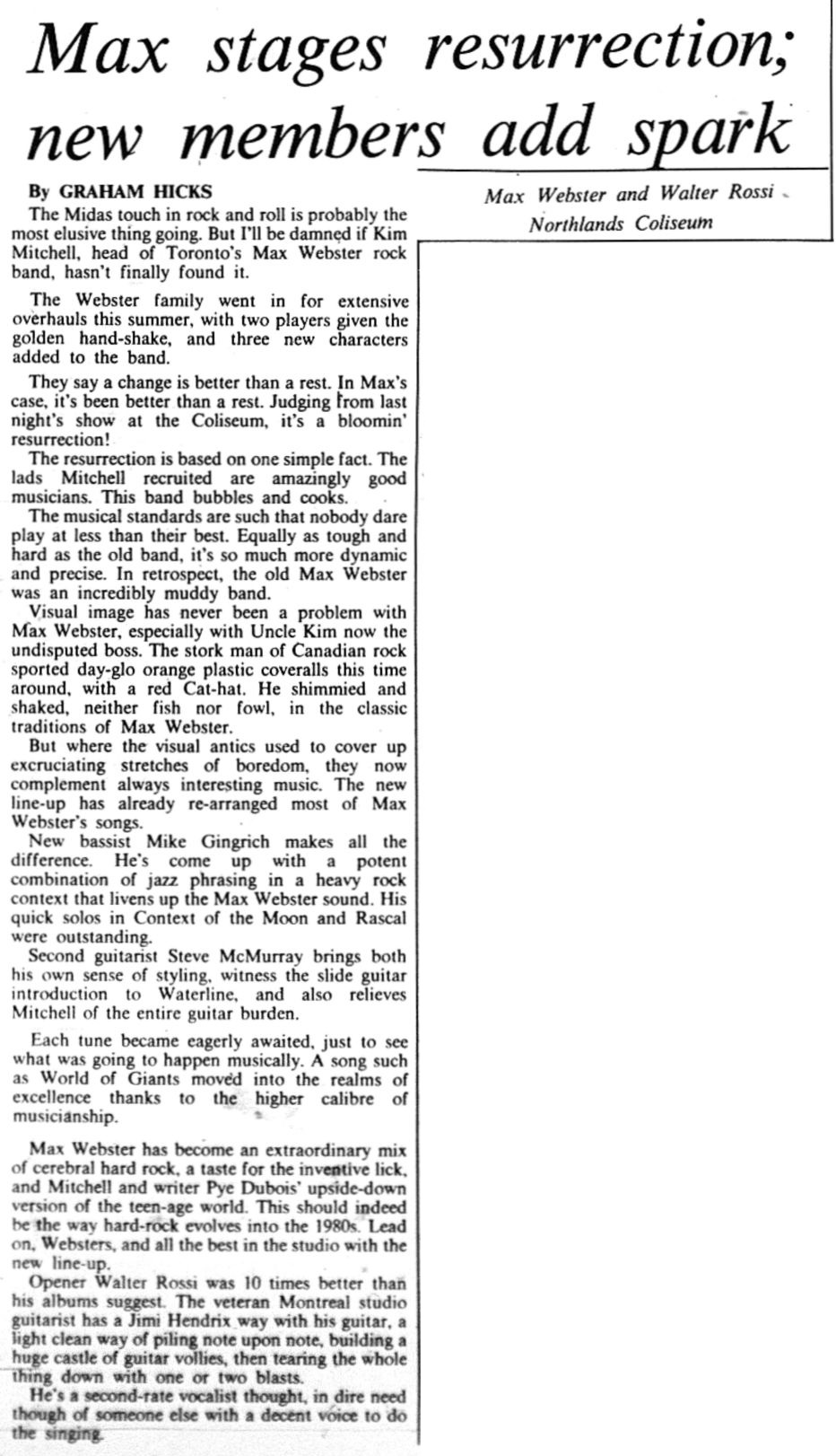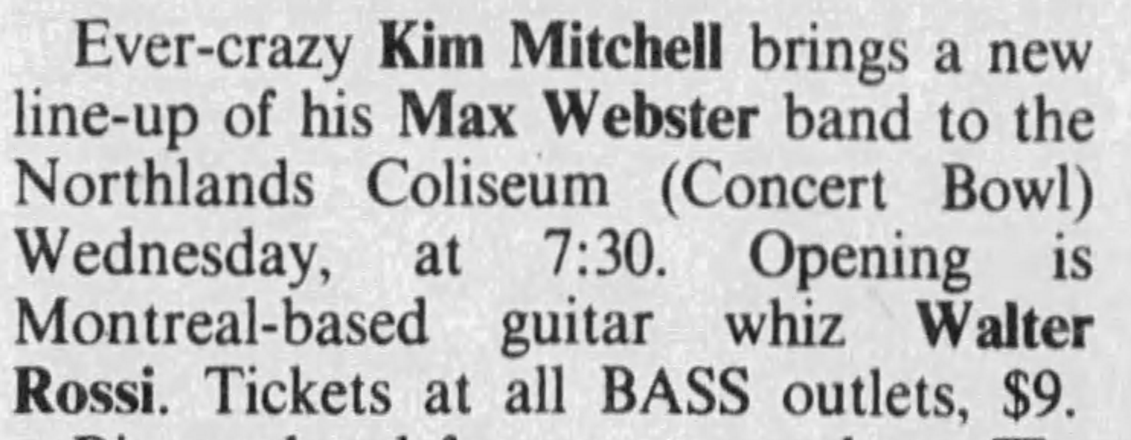 Headliner on the "Universal Juveniles" Tour Line-up Kim Mitchell : Vocals/Guitar Gary McCracken : Drums Mike Gingrich : Bass Steve McMurray : Guitar Greg Chadd : Keyboards Bands Walter Rossi Partial Setlist In Context Of The Moon Rascal Houdi In The World Of Giants Waterline Ads and Posters Tickets Articles