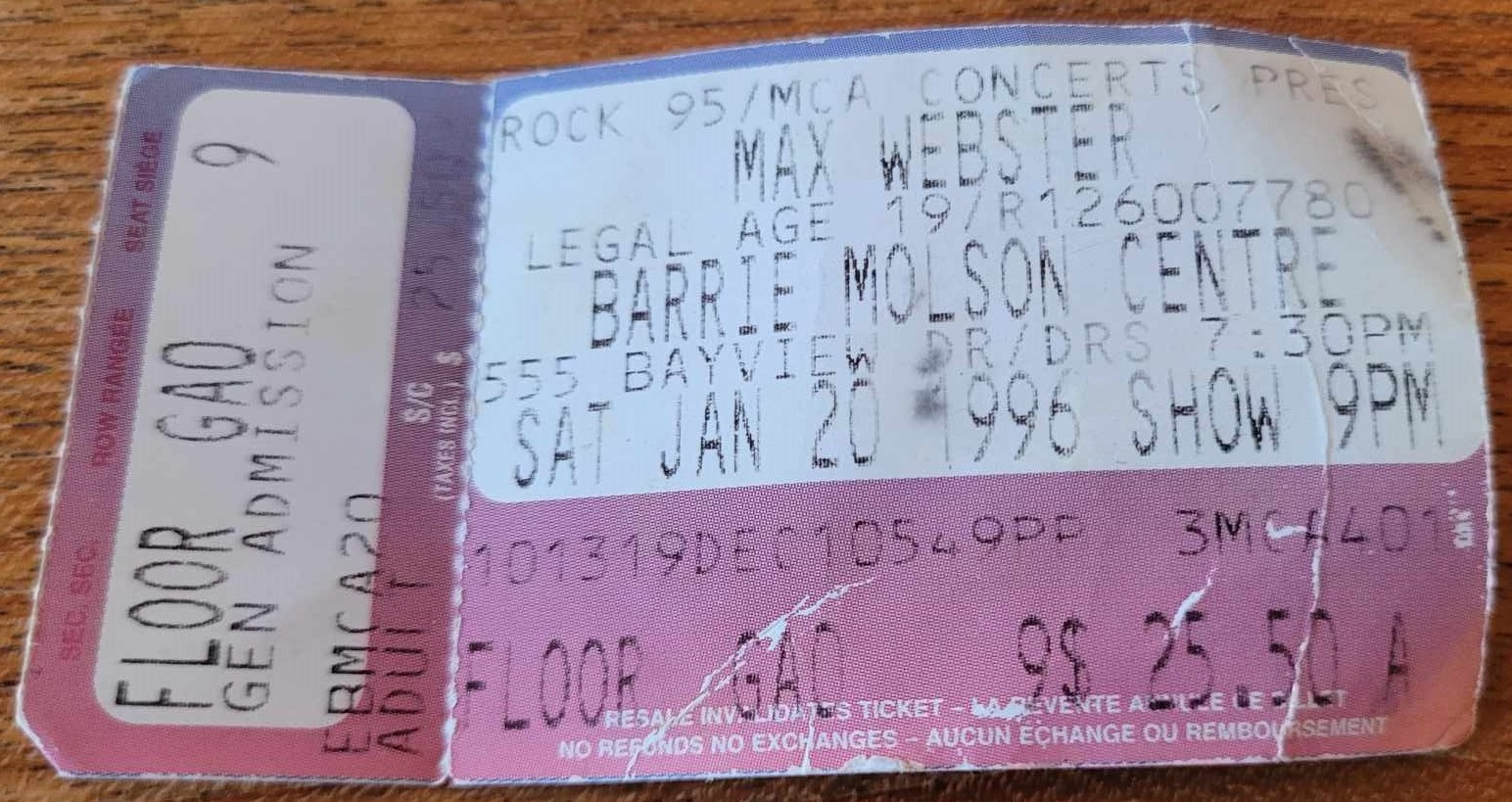 Max Webster's lyricist Pye Dubois came along to many of the shows on the reunion tour, providing a spoken interlude of sorts during Toronto Tontos, as seen below.