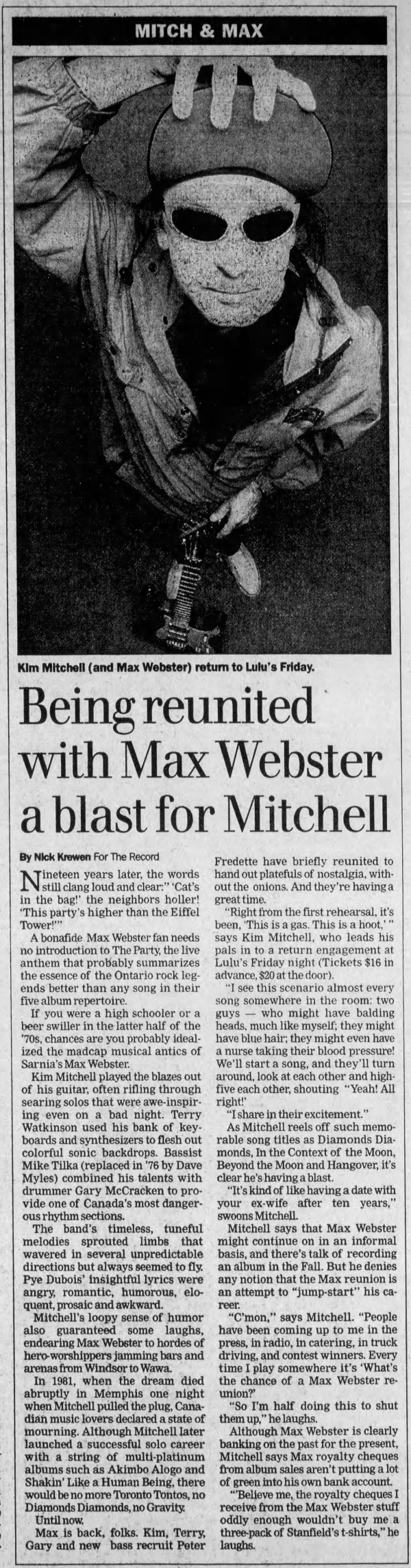 Line-up Kim Mitchell : Vocals/Guitar Terry Watkinson : Keyboards Gary McCracken : Drums Peter Fredette : Bass Ads and Posters Articles