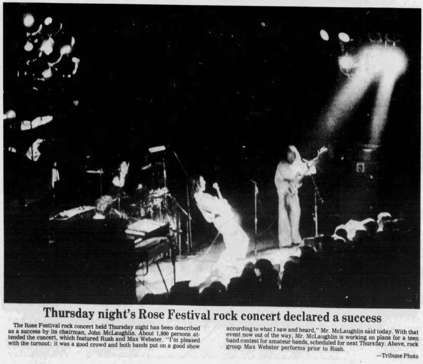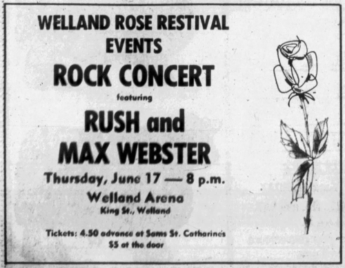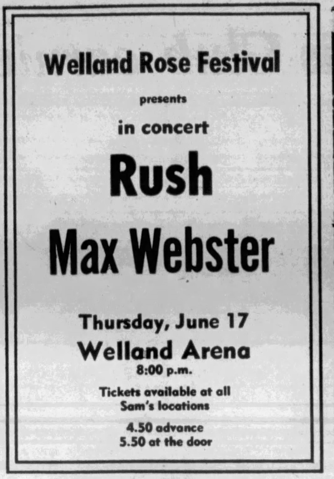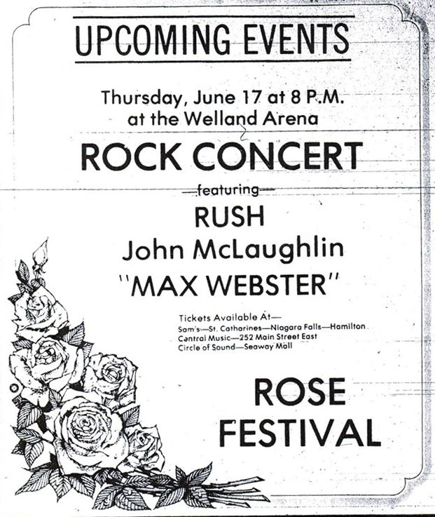 Supporting Rush on the "2112" Tour Details This show was part of the annual Welland Rose Festival. Line-up Kim Mitchell : Vocals/Guitar Mike Tilka : Bass Paul Kersey : Drums Terry Watkinson : Keyboards Bands Rush Photos Photo © Paul Ruta. Ads and Posters John McLaughlin wasn't on this gig (that was actually the name of the show's promoter). Tickets Articles