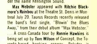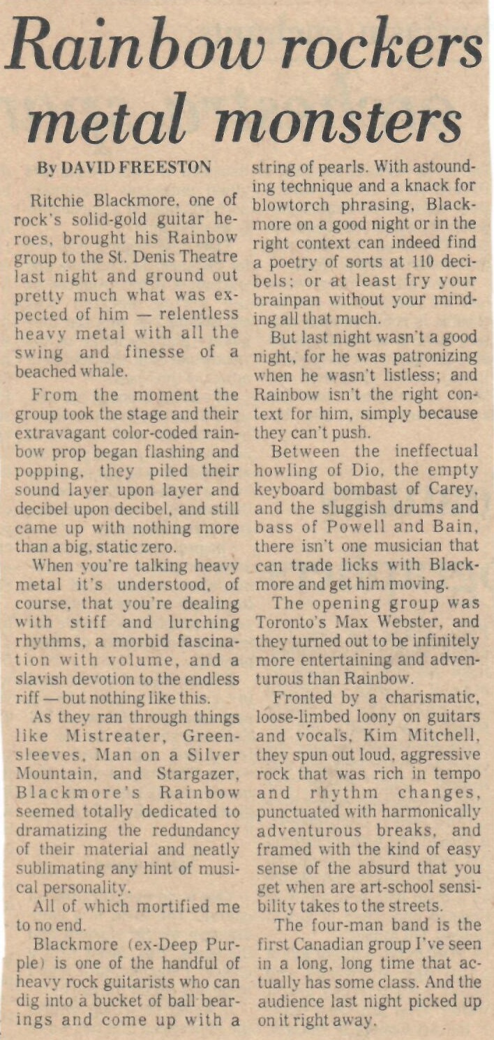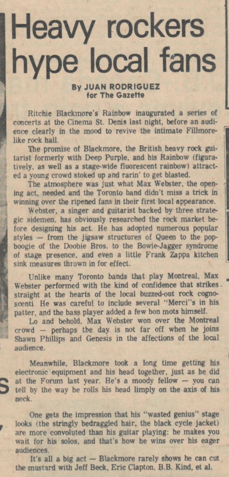 This is Max Webster's first time supporting Rainbow. The bands would share the same bill a few more times in 1978.