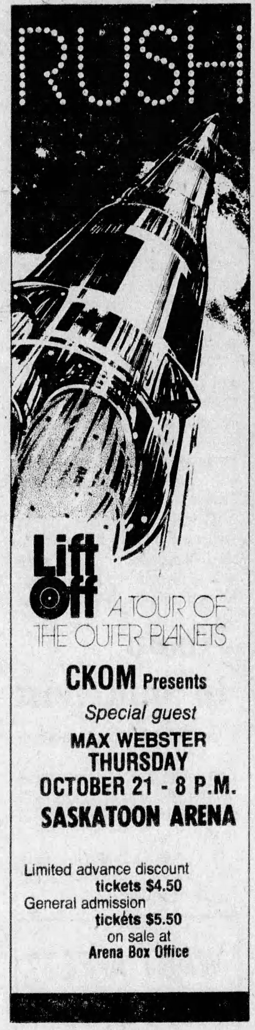 Supporting Rush on the "All The World's A Stage" Tour Line-up Kim Mitchell : Vocals/Guitar Mike Tilka : Bass Paul Kersey : Drums Terry Watkinson : Keyboards Bands Rush Ads and Posters