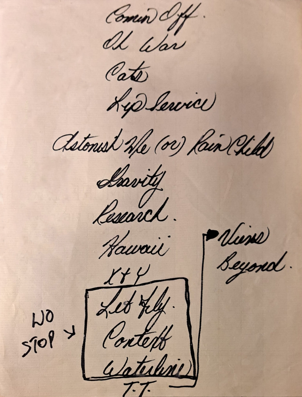 Kim's setlist from this gig (in his handwriting), from the collection of Jackie Lynn: