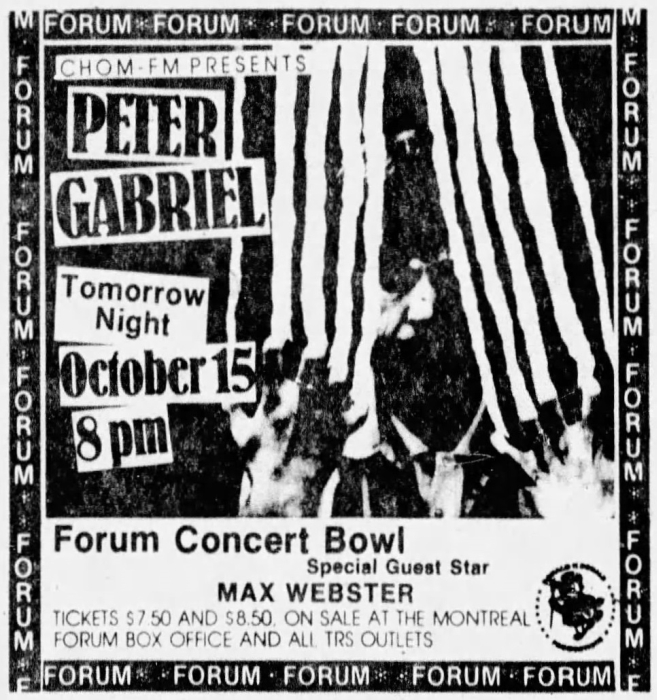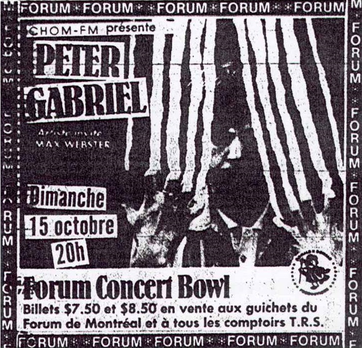 Supporting Peter Gabriel on the "Scratch" Tour Line-up Kim Mitchell : Vocals/Guitar Terry Watkinson : Keyboards Gary McCracken : Drums Dave Myles : Bass Bands Peter Gabriel Ads and Posters Tickets