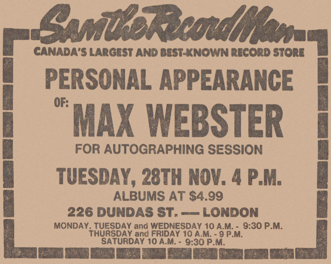The band did an autograph session at Sam The Record Man in the afternoon before the gig.