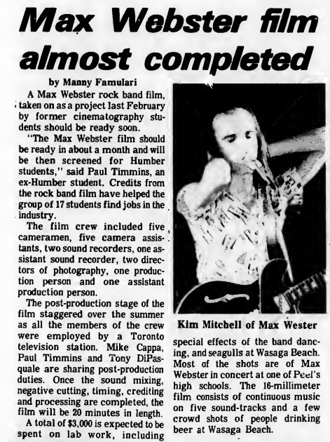A 22-minute film (actually a college project by a couple film students) of Max Webster contains footage of six songs from this date. It's certainly the best known footage of the band, with VHS copies having been available since at least the 1990s.