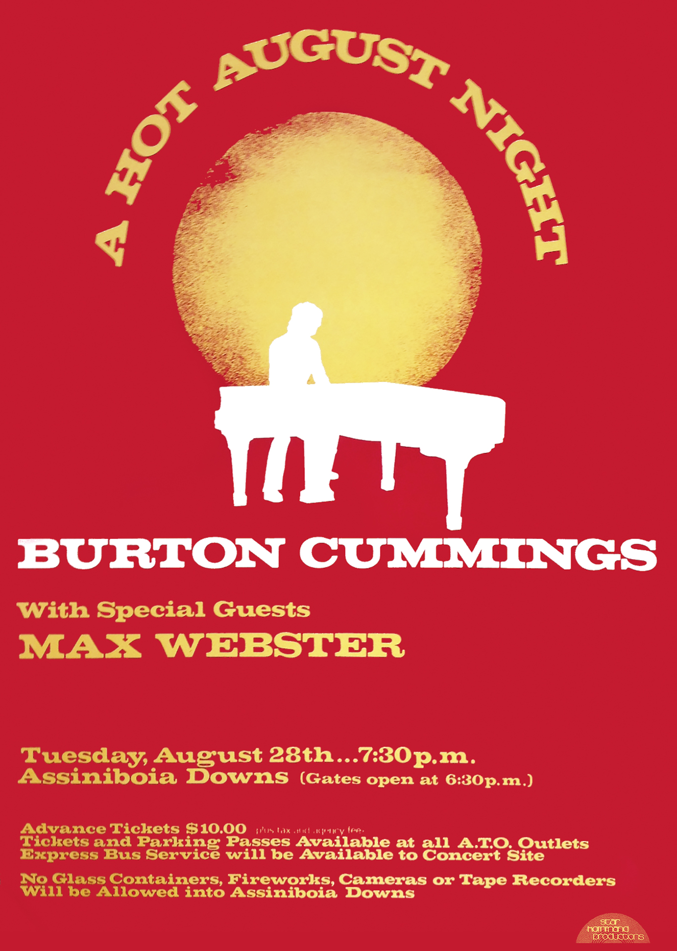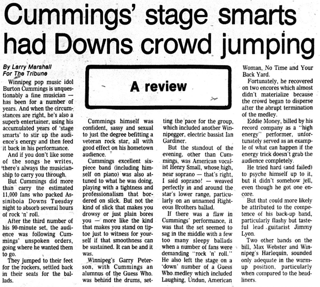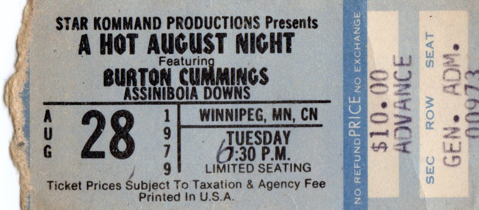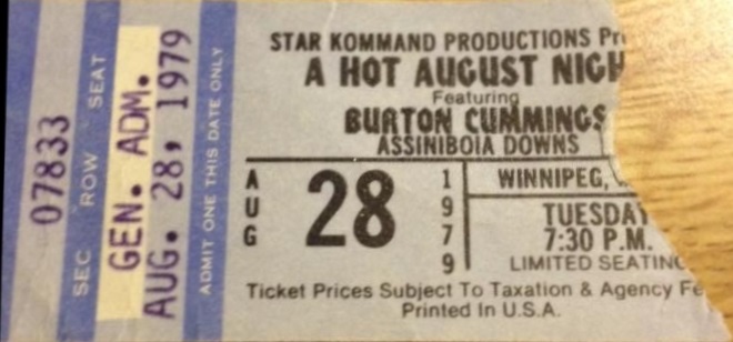 Burton Cummings headlined. A fan recalls him having a breakdown and leaving the stage, but not before he licked his mic stand.