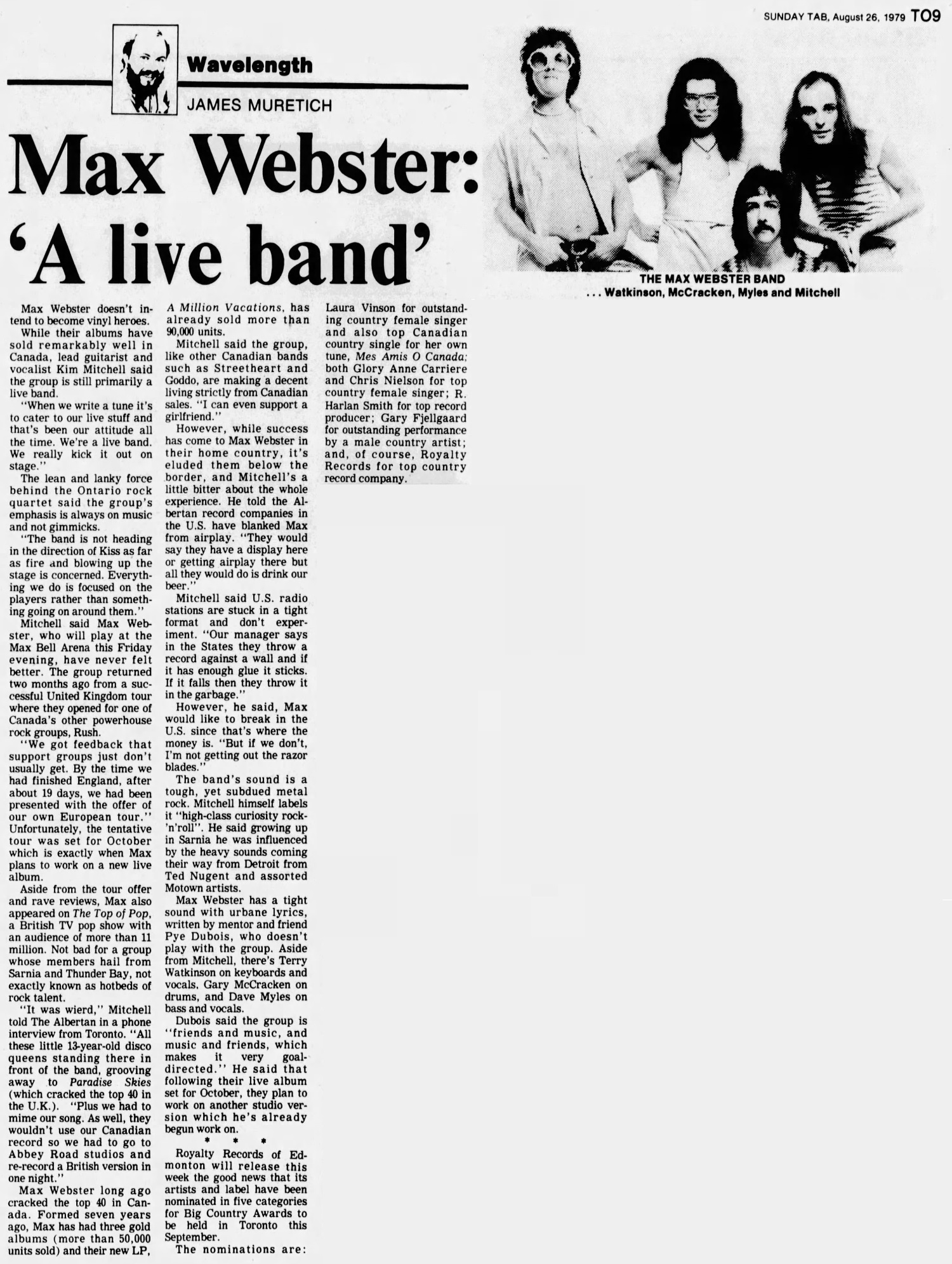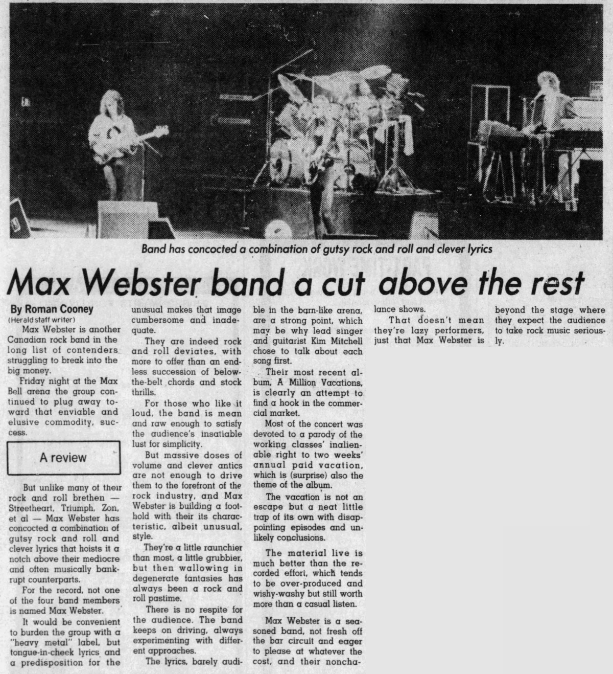 Headliner on the "A Million Vacations" Tour Line-up Kim Mitchell : Vocals/Guitar Terry Watkinson : Keyboards Gary McCracken : Drums Dave Myles : Bass Bands Harlequin Partial Setlist Research (at Beach Resorts) Gravity Beyond The Moon Photos Photos © Charles Hope: Photo © Randy Fidgeon: Ads and Posters Articles