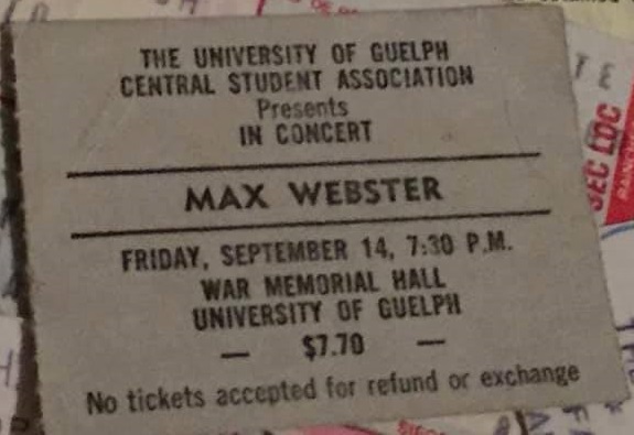 Kim later recalled that had contracted laryngitis and his voice gave out (a review of last night's show says it was already showing signs of strain then), leading them to overdub some of his lead vocals for the live album released just over a month later. Like all Max Webster albums, it went gold (A Million Vacations went platinum).