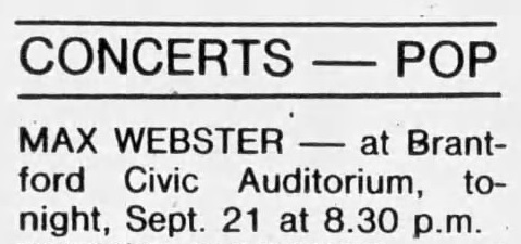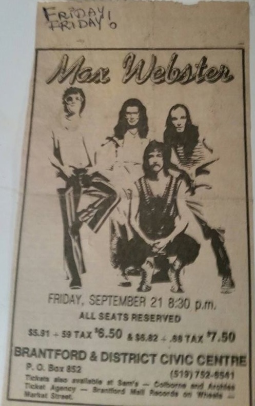 Nightwinds supported Max Webster just this once. Their bassist Mike Gingrich likely connected with Kim backstage at this show, as he would find himself being Max's bassist within a year.