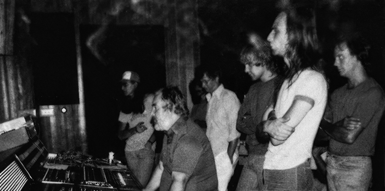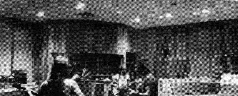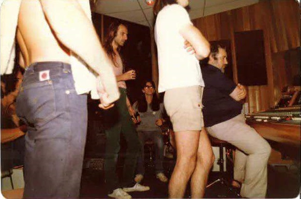 The first two photos are from an old Phase One brochure that fortuitously captured this legendary session. The first one is members of both bands in the control room with Jack Richardson at the board (and Max's road manager Rob Gunn on the right). The second one is faint, but it's Geddy Lee, Kim Mitchell and Dave Myles hard at work on the floor. © Paul Gross.