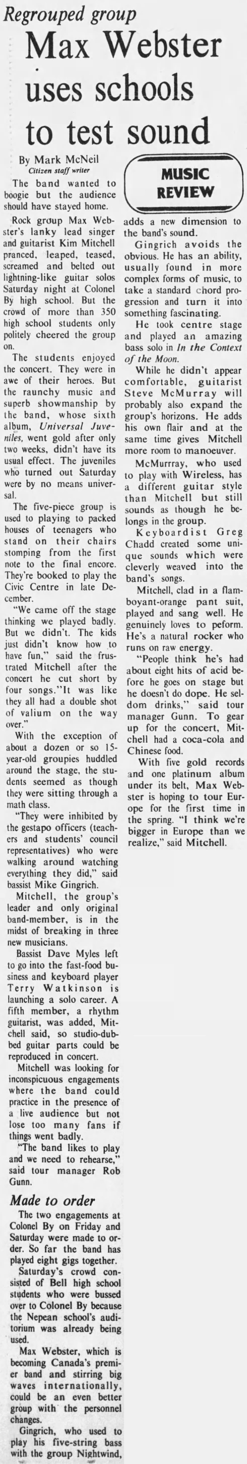 Line-up Kim Mitchell : Vocals/Guitar Gary McCracken : Drums Mike Gingrich : Bass Steve McMurray : Guitar Greg Chadd : Keyboards Partial Setlist In Context Of The Moon Articles