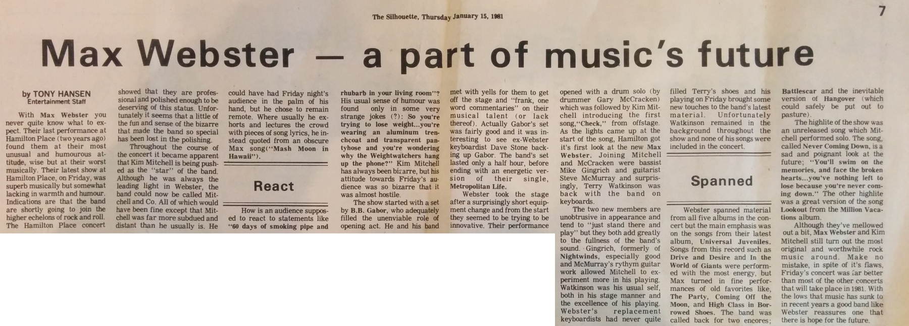 - Kim Mitchell : Vocals/Guitar